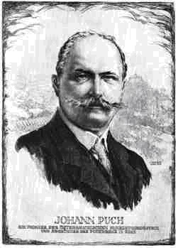Angefangen hat alles in einer kleinen Werkstätte in der Strauchergasse in den letzten Jahren des 19. Jahrhunderts: dort erzeugte der junge Schlosser Johann Puch seine ersten Fahrräder. 1899 schließlich erwarb er am Südende der Stadt eine alte Mühle mit Wasserantrieb und legte damit den Grundstein für die "Johann Puch Fahrradwerke" - heute einer der traditionsreichsten Industriebetriebe der steirischen Landeshauptstadt. Kraft seiner unerschöpflichen Energie und Kreativität nahm Johann Puch wesentlichen Einfluss auf die Entwicklung des Fahrradbaus, aber auch im Motorrad- und Autobau leistete der rennsportbegeisterte Motorpionier wichtige Entwicklungsarbeit. Bis zum Jahr 1914 konstruierte er 14 verschiedene Modelle - darunter den bekannten Alpenwagen, Typ VII - die im Rennsport erfolgreich im Einsatz waren. Nicht zuletzt nahm Puch auch an der Entwicklung des Flugwesens teil. So war etwa das gelbe Luftschiff der "Renner-Buben" mit einem von ihm konstruierten Motor ausgestattet. Die Fusion mit den Steyr-Werken sowie die Zerstörung eines großen Teiles der Werkstätten im Zweiten Weltkrieg erlebte Johann Puch nicht mehr: er starb kurz vor Ausbruch des Ersten Weltkrieges am 19. Juli 1914. Motor- und Fahrradproduktion gibt es mittlerweile in Graz zwar nicht mehr, auf dem Gebiet der Fahrzeugtechnik (Allradantrieb) genießt die Firma Puch allerdings heute noch Weltruf. |