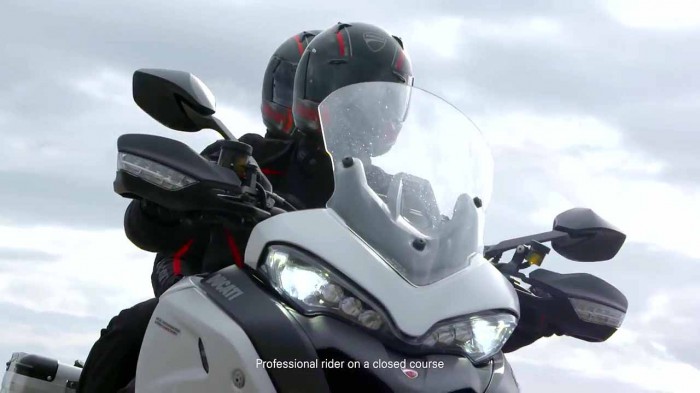 Foto aus der 4. Episode der Serie Ducati Wild Side zur Technik der Multistrada 1200 mit der Enduro in Action